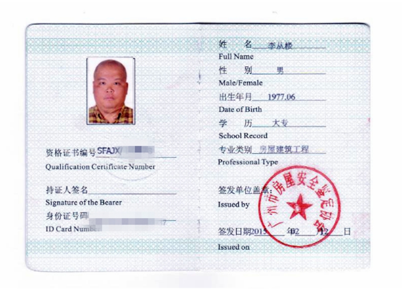 • 房屋建筑安全資格證書