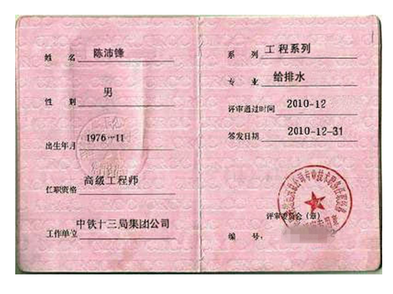 高級(jí)工程師資格證書